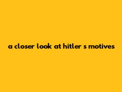 A Closer Look At Hitler's Motives