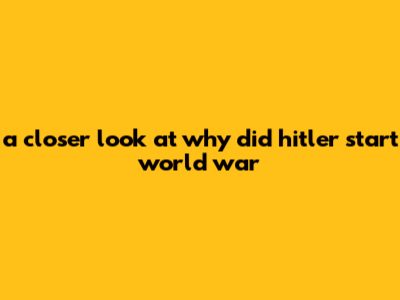 A Closer Look At Why Did Hitler Start World War