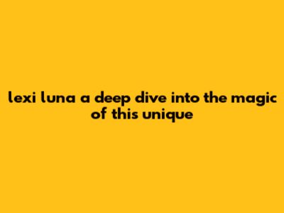 Lexi Luna: A Deep Dive Into The Magic Of This Unique