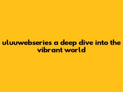 Uluuwebseries: A Deep Dive Into The Vibrant World